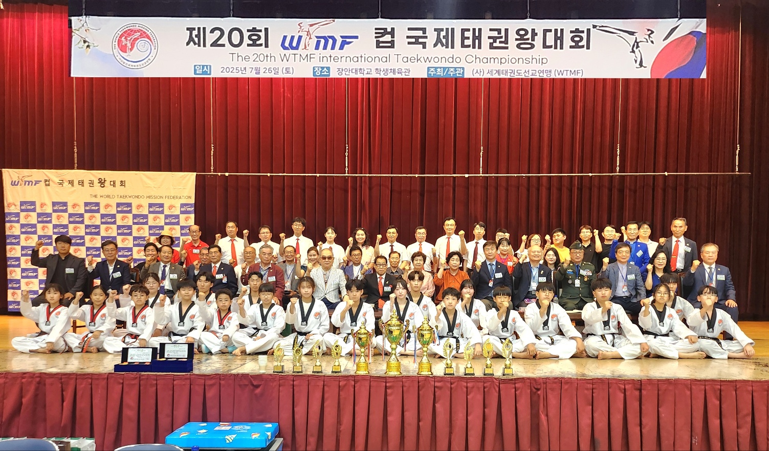 [세계태권도무예신문] 사단법인 세계태권도선교연맹(회장 김민수)이 주최·주관한 ‘제20회 WTMF컵 국제태권왕대회’가 7월 26일(토) 장안대학교 실내체육관에서 약 1.000명의 국내·외 꿈나무 선수들이 출전한 가운데 성대하게 개최되었다.