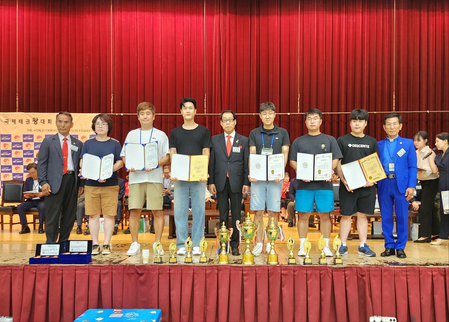 🔼‘제20회 WTMF컵 국제태권왕대회’가 개최에 공이 큰 지도자들에게 표창을 수여하고 기념사진을 촬영하고 있다.
