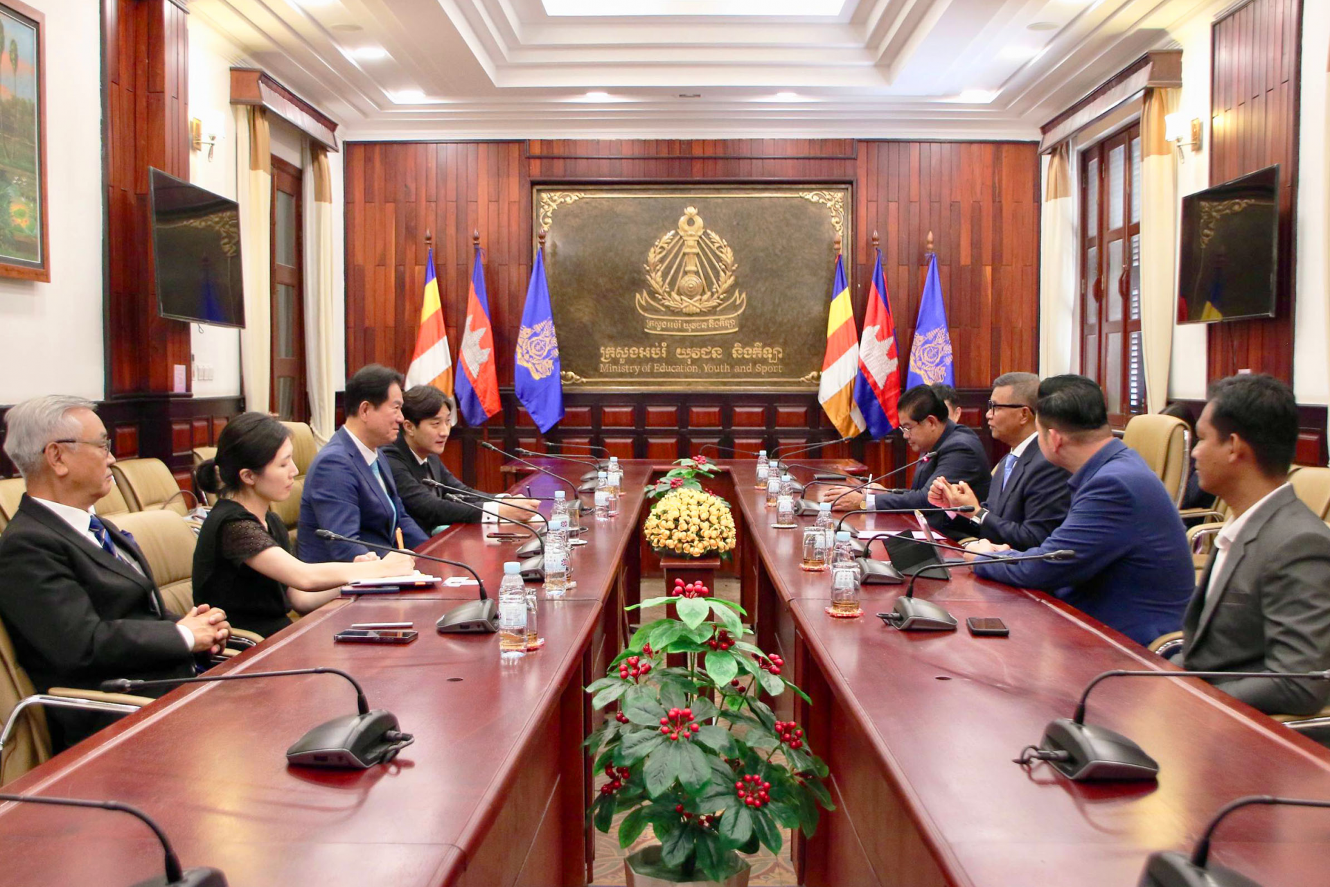 🔼이동섭 원장을 비롯한 국기원 관계자와 캄보디아 교육청소년체육부 관계자들이 태권도 활성화를 위해 회의를 하는 모습. [사진=국기원]