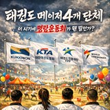 - 공지 [김덕근의 직설] "태권도 메이저 4개 단체, 이와 중에 명랑운동회가 웬 말인가? 일선 도장 살리기 한마당으로 전환하라" "태권도 메이저 4개 단체, 이와 중에 명랑운동회가 웬 말인가? 일선 도장 살리기 한마당으로 전환하라""일선 도장의 절박한 현실을 외면하는 몰염치한 ...