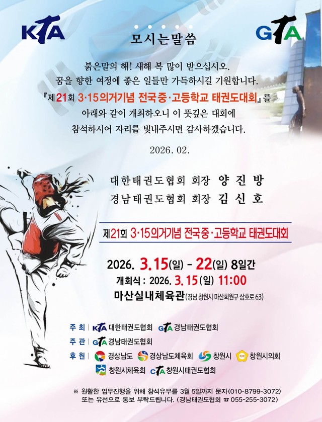 3·15 정신, 태권으로 승화! ‘제21회 3·15의거기념 전국 중·고등학교 태권도대회’ 마산에서 성대한 개막